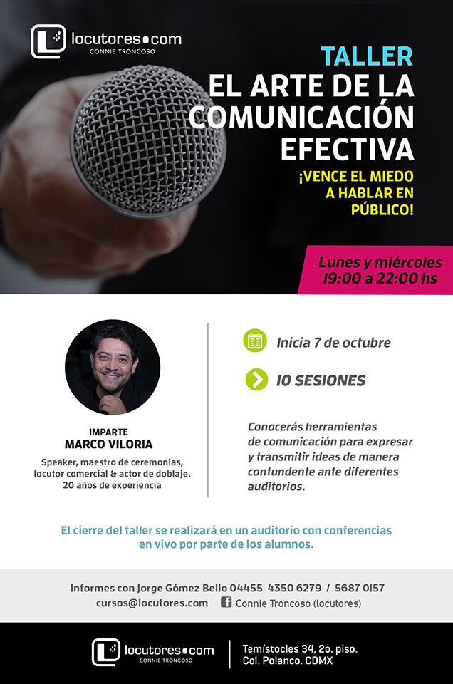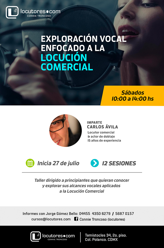 Este taller es para todos los niveles, para gente que quiera aprender o mejorar algunas técnicas, eliminar vicios fonéticos y poder practicar técnicas que se están utilizando en la actualidad en la Locución Comercial.