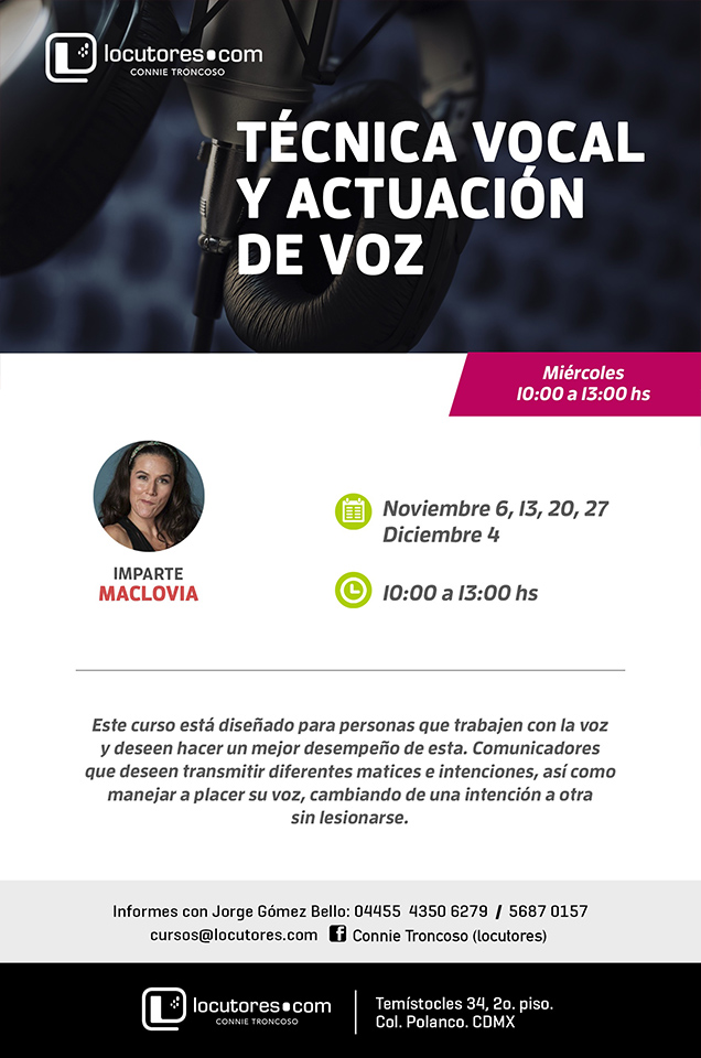 Este curso está diseñado para personas que trabajen con la voz y deseen hacer un mejor desempeño de esta. Comunicadores que deseen transmitir diferentes matices e intenciones, así como manejar a placer su voz, cambiando de una intención a otra sin lesionarse. Nuevo