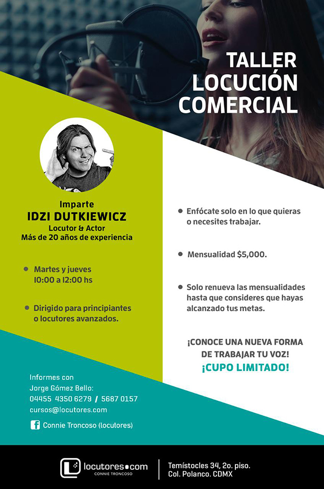 Este taller es para todos los niveles, para gente que quiera aprender o mejorar algunas técnicas, eliminar vicios fonéticos y poder practicar técnicas que se están utilizando en la actualidad en la Locución Comercial.
